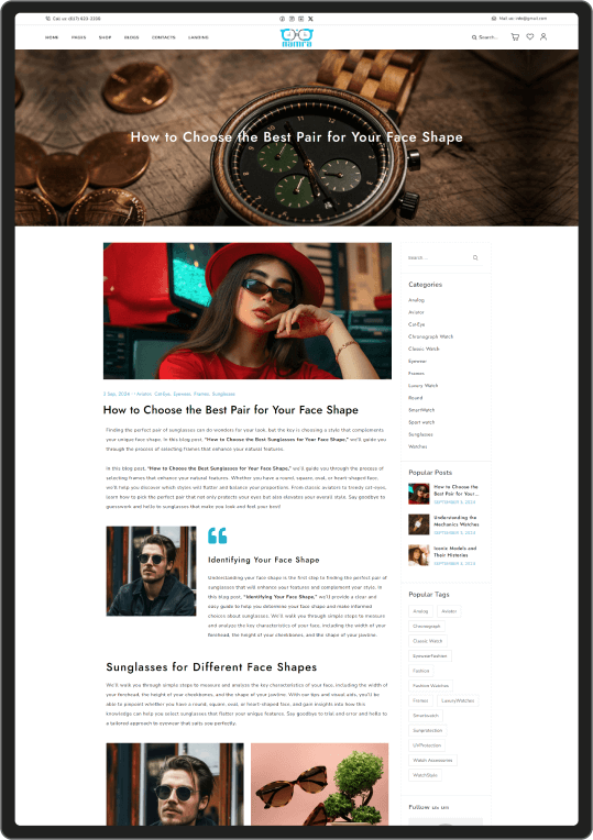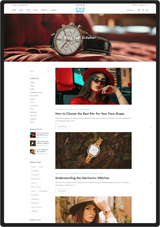 The best Sunglass & Watch Store WooCommerce WordPress Theme